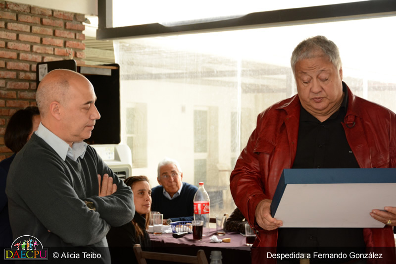 Despedida Fernando González El 26 de mayo de 2015 se realizó en la sede de DAECPU la despedida a Fernando González, a continuación presentamos una serie de fotos que ilustran la ceremonia. Mié, 27 Mayo 2015
